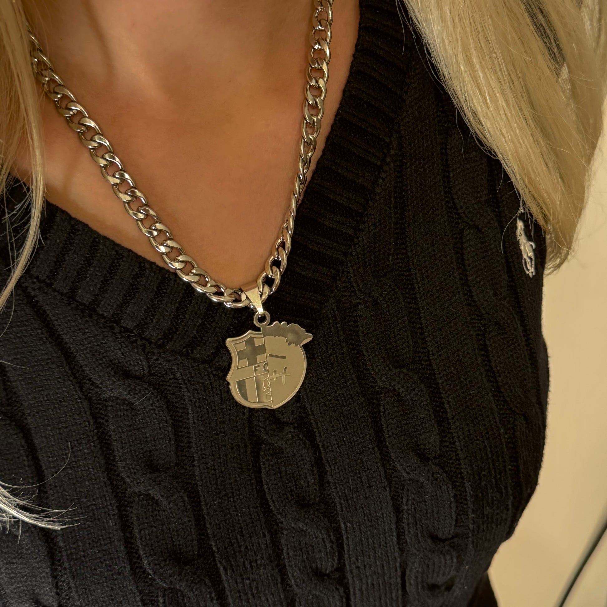 WIDTH OF LOGO: 3CM, THE CHAIN WEIGHS 35 g .